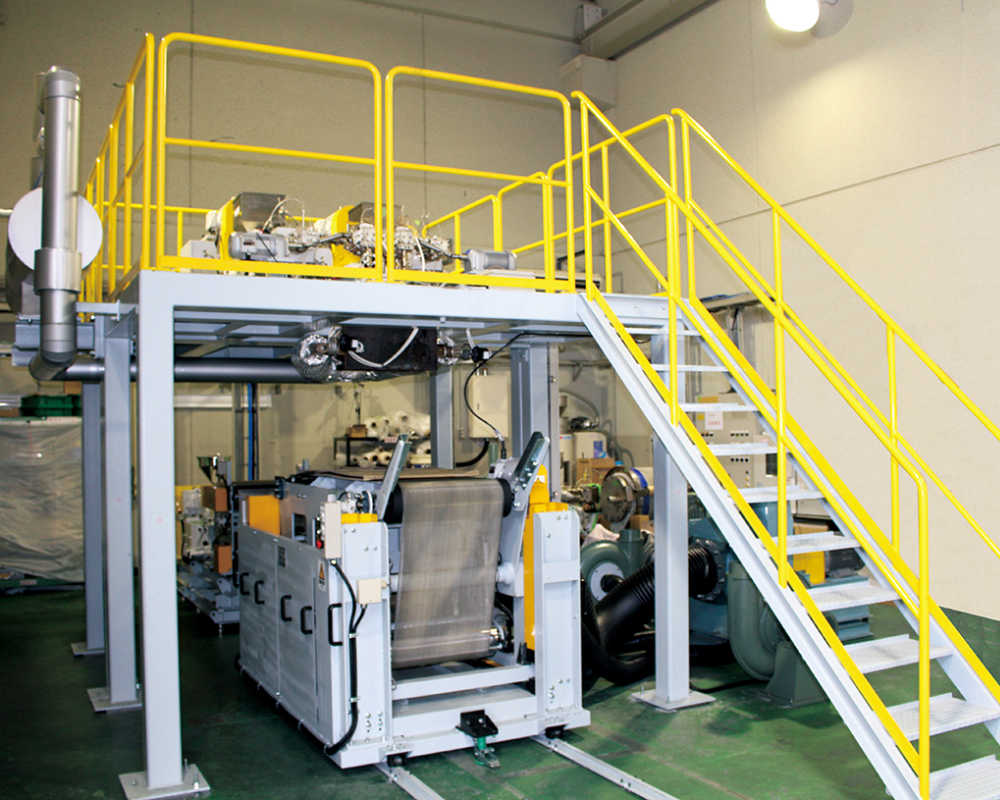 メルトブローン生産設備の中で最もコンパクトな機械です。高付加価値ポリマーを使用しての製造に対応しており、PPSなどの試験が可能です。
